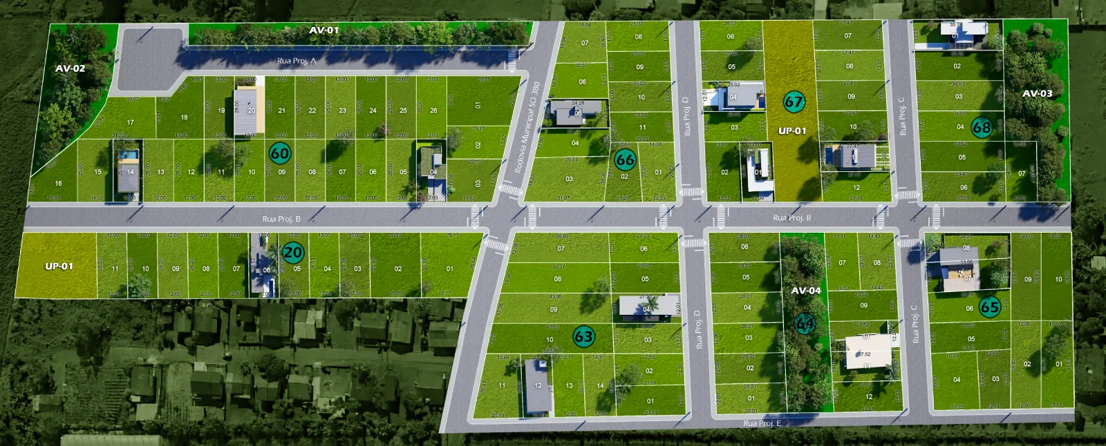 Com 9 quadras e 103 lotes, o empreendimento oferece opções que variam de 300m² a 588m², atendendo diferentes necessidades e projetos. Ao todo, são 55.674m² de área total, sendo 5.397m² destinados à área verde, garantindo um ambiente mais leve, agradável e integrado à natureza.